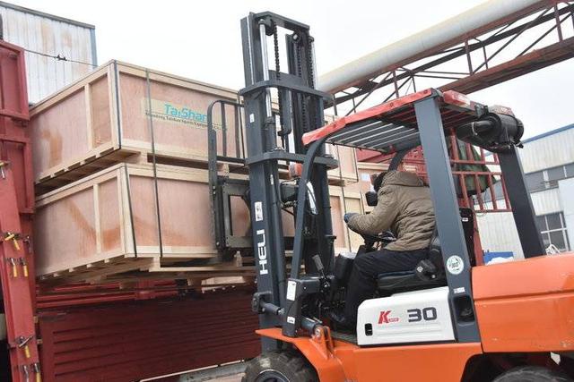 工人正在对器材进行装车运输。