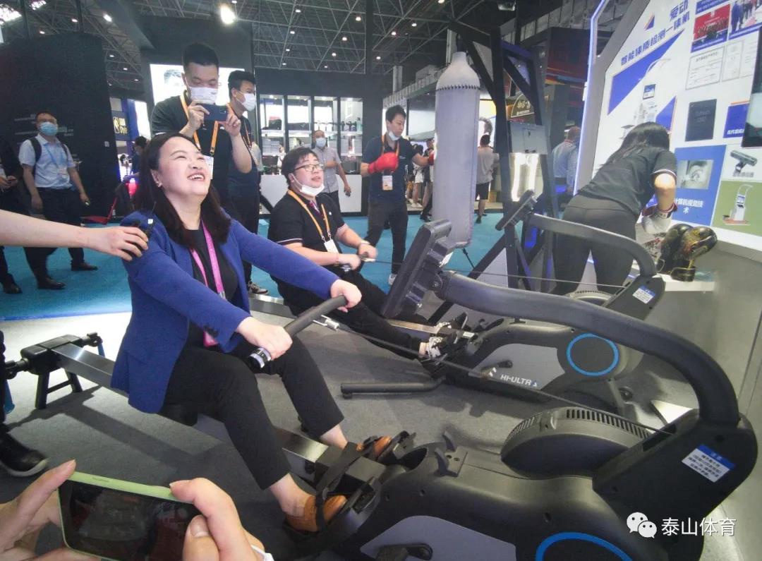在居家健身智慧体育领域,央视财经新媒体记者李琳亲身体验云体育智能拳击沙袋、智能划船滑雪训练器,并进行实时联网比赛,收获现场观众的加油助威。