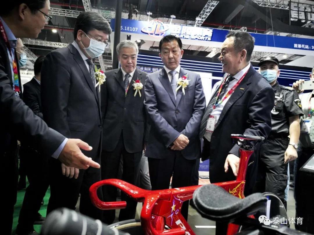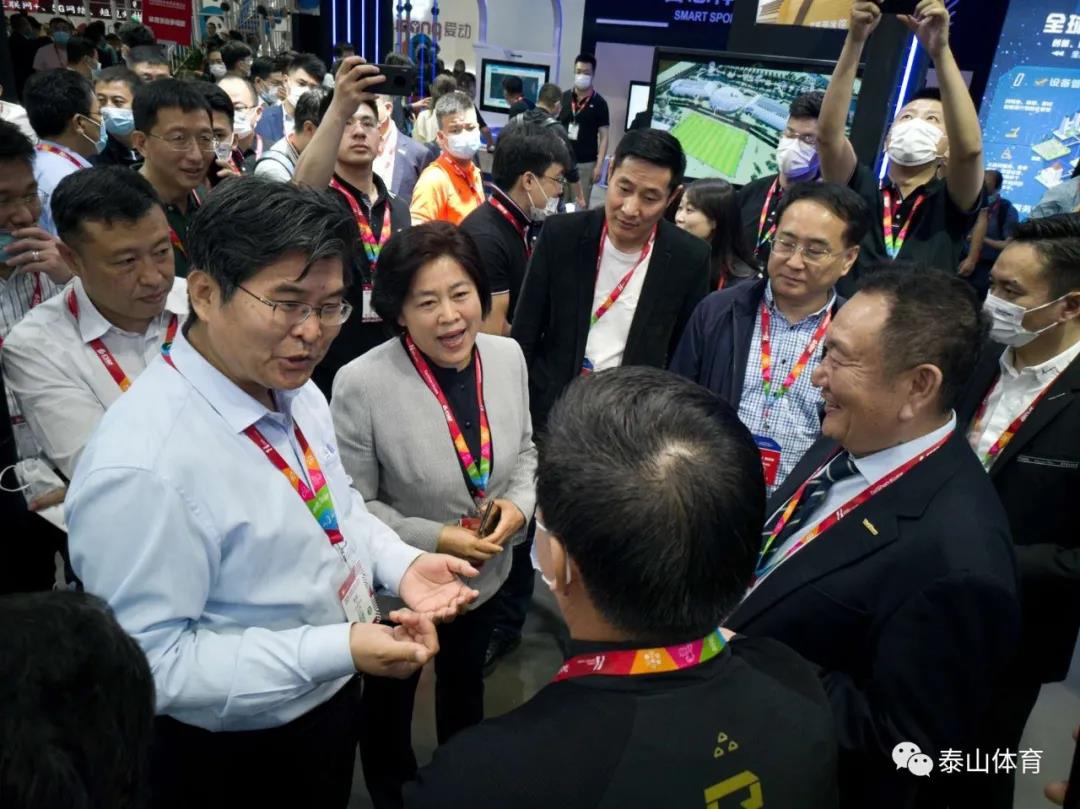 国家体育总局副局长李颖川、上海市副市长陈群、国家体育总局体育器材装备中心主任孙为民、上海市体育局局长徐彬在云体育产业集团卞志良董事长陪同下参观云体育展厅。