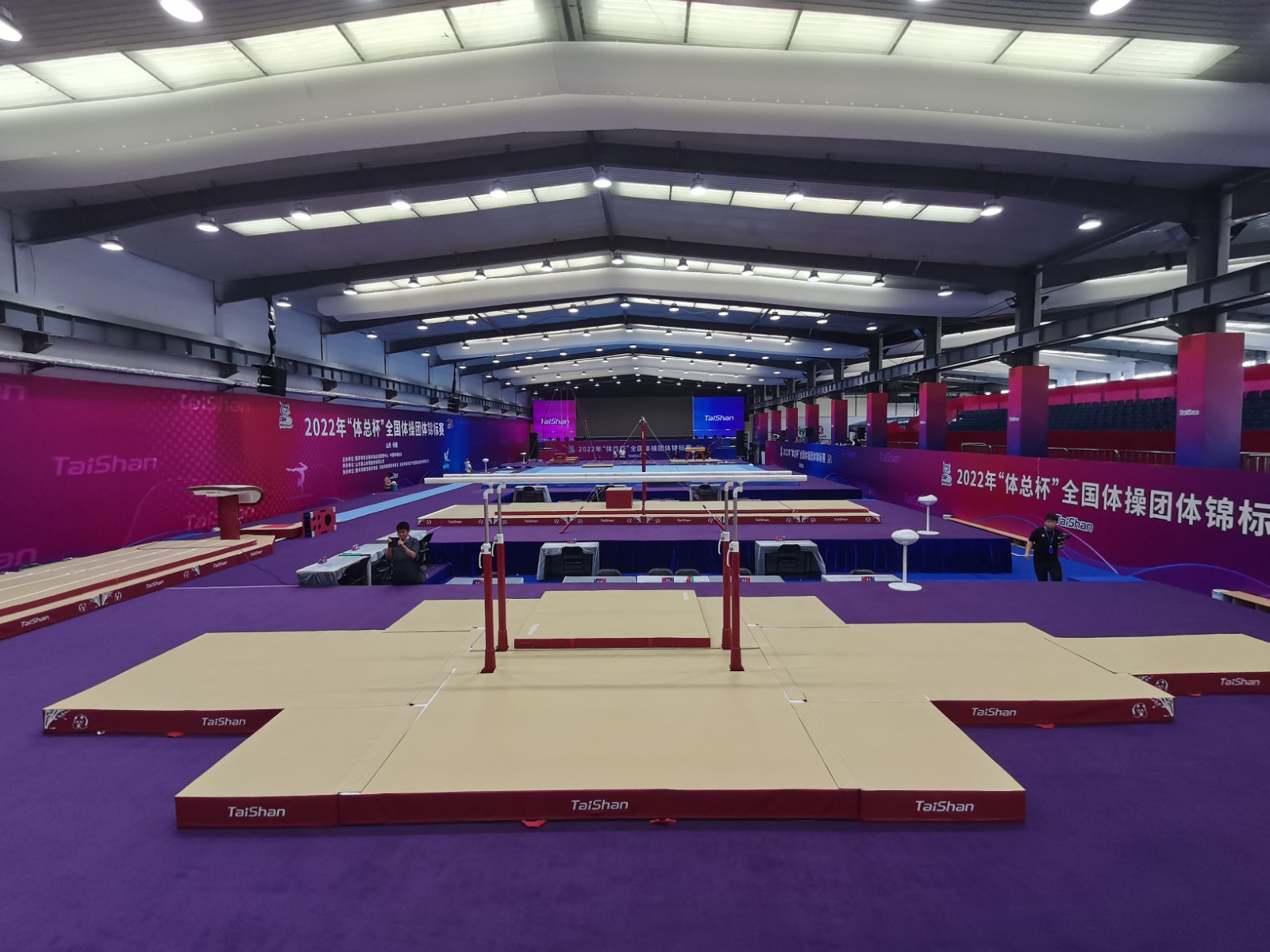 作为赛事承办方,云体育协同赛事组委会全力筹办各项工作,高标准打造比赛场馆、训练场馆,并提供高端体育装备。比赛场地总共分为4个区域,将在这里进行跳马、吊环以及自由操等7个比赛项目。北面组委会专门搭建了能承载300人的看台。在遵守疫情防控的前提下,大赛组委会将在比赛期间邀请部分市民代表中小学生以及体育爱好者来到比赛现场,近距离感受国家级体育赛事的魅力。