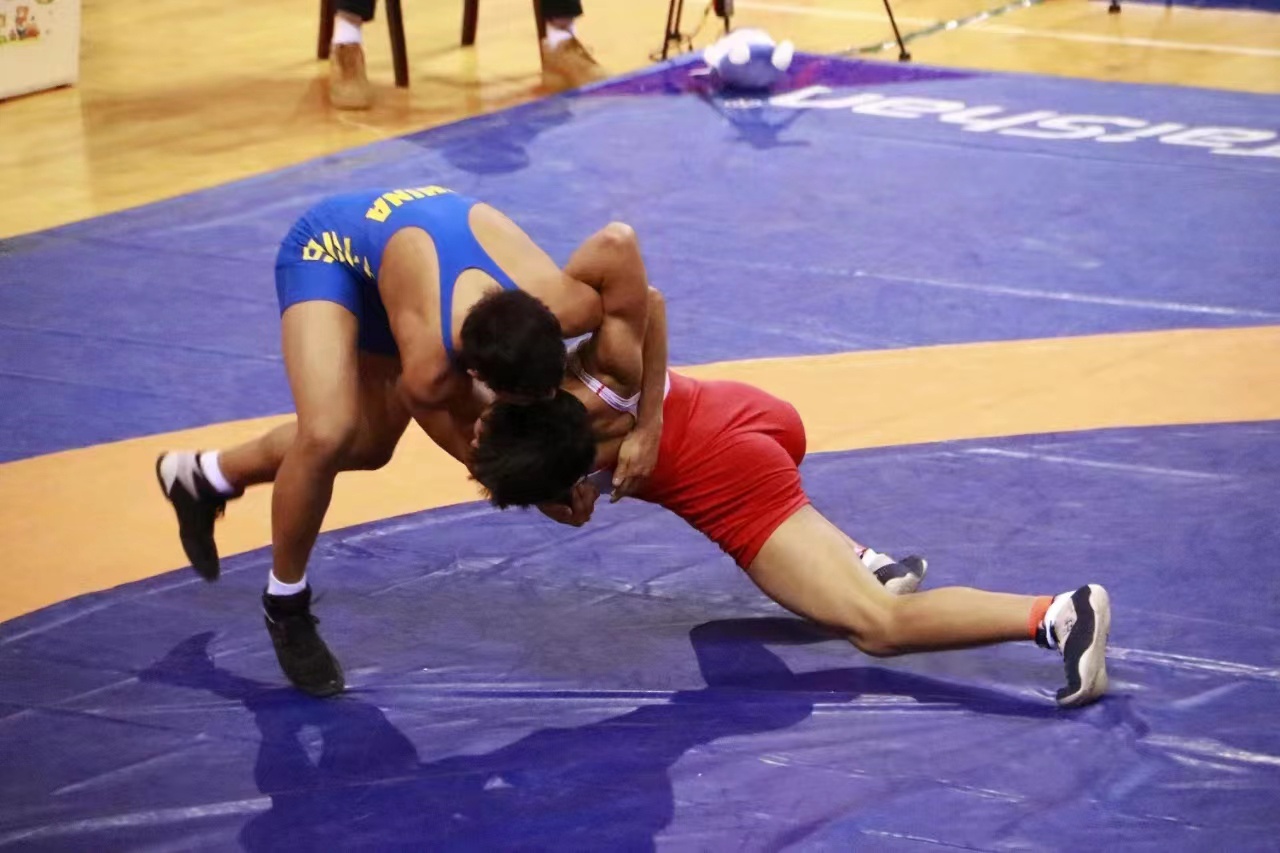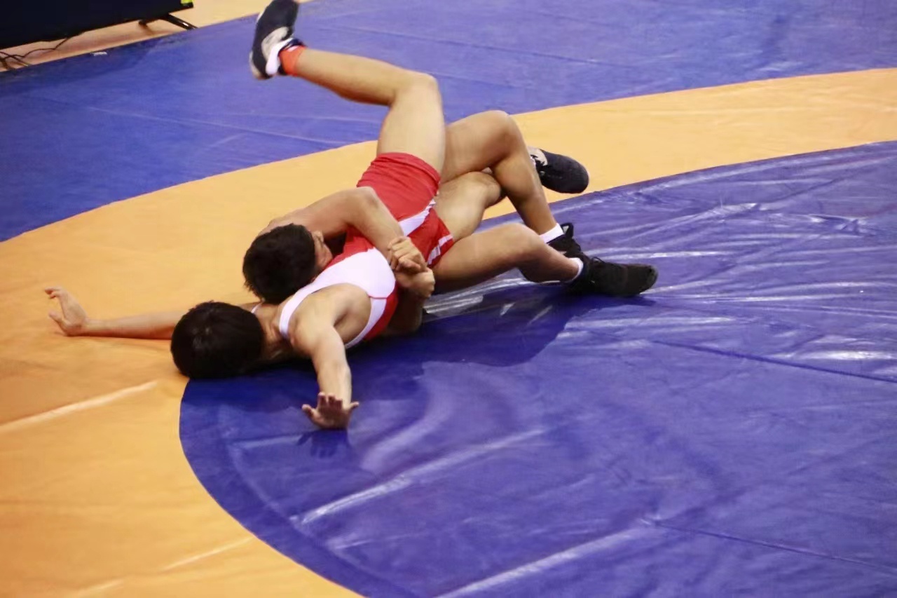 比赛现场,各代表队的摔跤健儿们激烈角逐、灵活移动,在云摔跤器材上展示出一系列高难度、大幅度技术动作,充分展现出了摔跤运动的独特魅力。