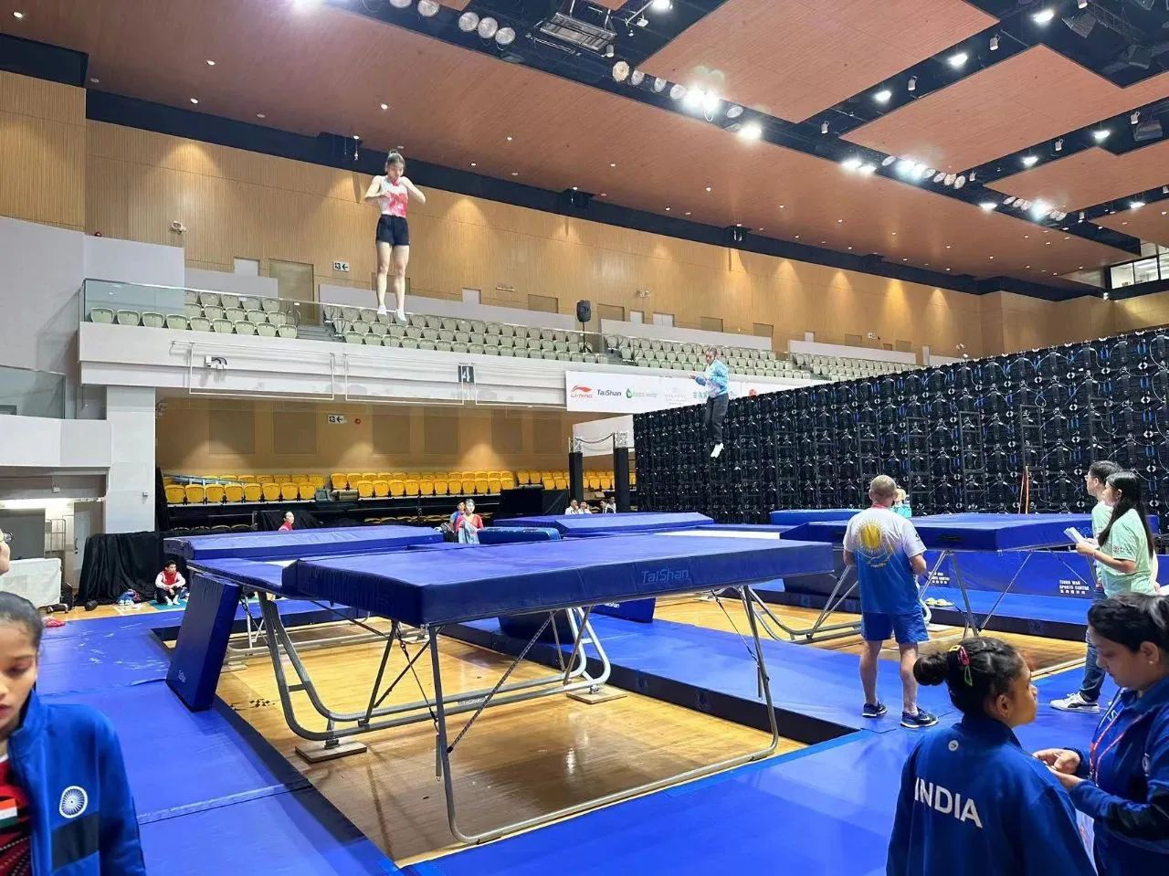 为服务好本届蹦床锦标赛,云体育保障人员严格按照赛事服务手册开展工作,从场馆的规划布局、器材的安装调试、标准高度的校准、过程巡检等各个环节,一丝不苟、严谨细致,确保蹦床器材安装的准确无误,始终践行国际赛场上的中国标准,见证云体育全领域规划、设计、制造、集成、运营、服务一站式解决方案的发展理念。
