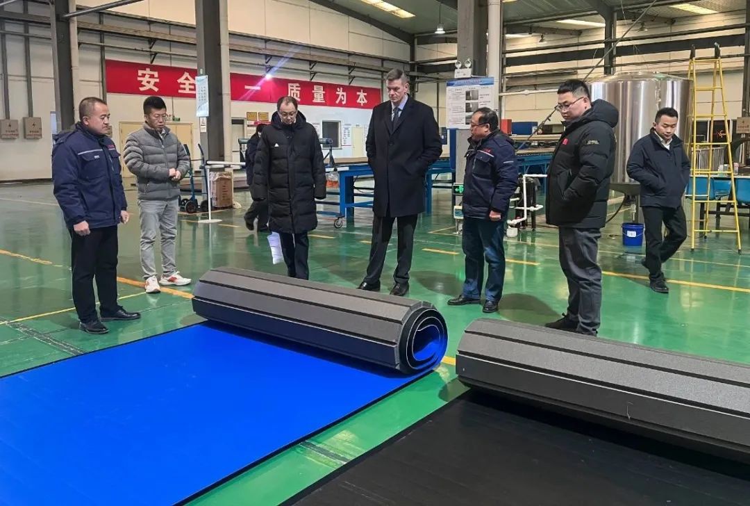 卡洛斯·艾力克主席深入云体育的产品中心与生产线,见证了智能化制造的全流程。在参观中高度评价云体育的创新能力和产品质量:“云体育不仅是器材供应商,更是国际柔道标准制定的重要参与者。”
