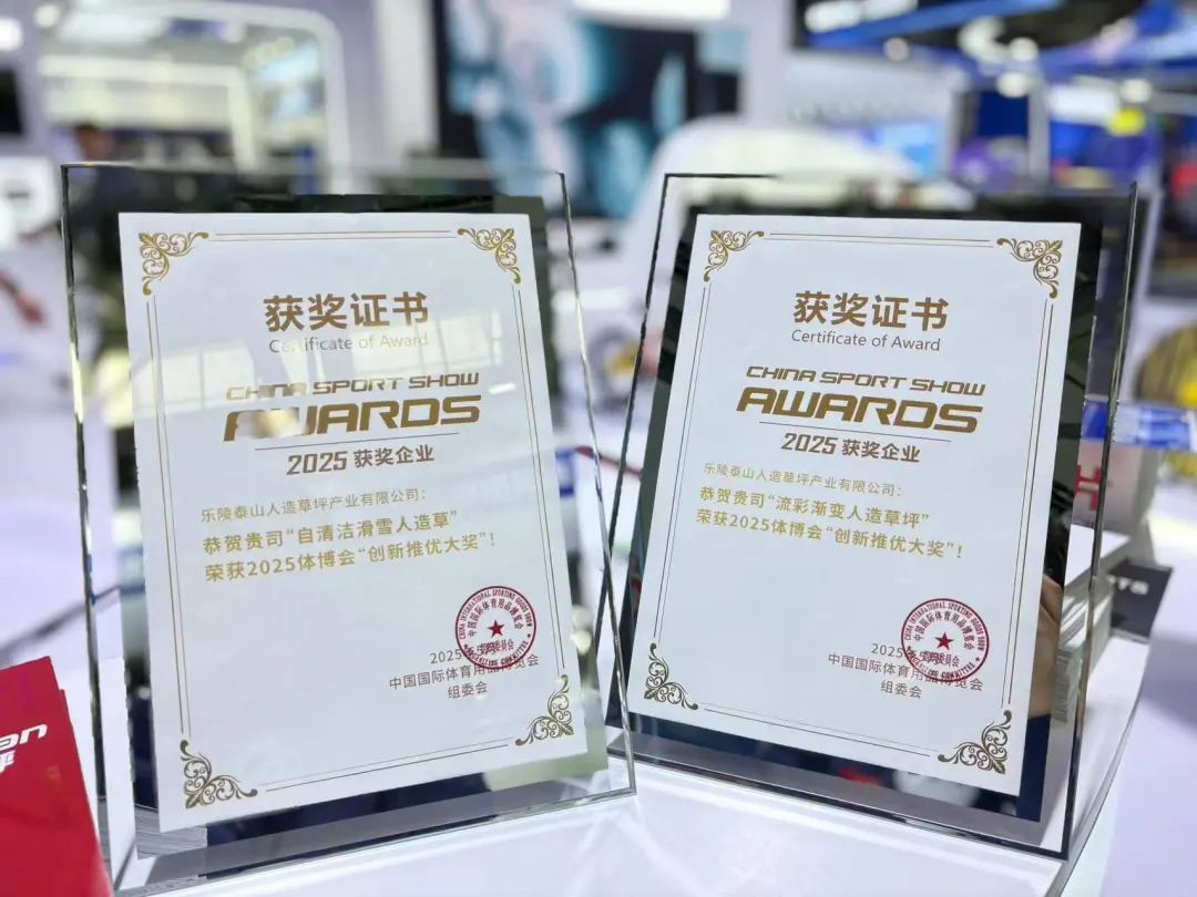 在这次评选中云人造草坪的流彩渐变人造草坪产品,也获得中国体博会创新推优-中国制造之美专项奖”金奖。流彩人造草坪是一款突破传统的新型艺术草坪,采用独特工艺实现色彩渐变效果,使图案呈现立体三维观感,兼具实用功能和艺术价值。相比普通人造草坪,它能逼真还原油画、国画等艺术风格,适用于运动场地、家居装饰、公共空间美化及商业宣传等多个场景。产品具有经久耐用、环保可回收、耐磨防尘等优势,使用寿命可达数十年。