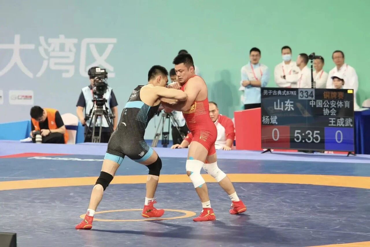 如果说金牌是竞技体育的勋章,那么赛场上的坚守与传承,便是体育精神的灵魂。36岁的杨斌,身兼广东省古典式摔跤队教练与运动员双重身份,已是连续征战五届全运会的“赛场常青树”。他以年龄不占优的“高龄”对抗一众年轻选手,最终在古典式摔跤87公斤级决赛中摘得铜牌。
