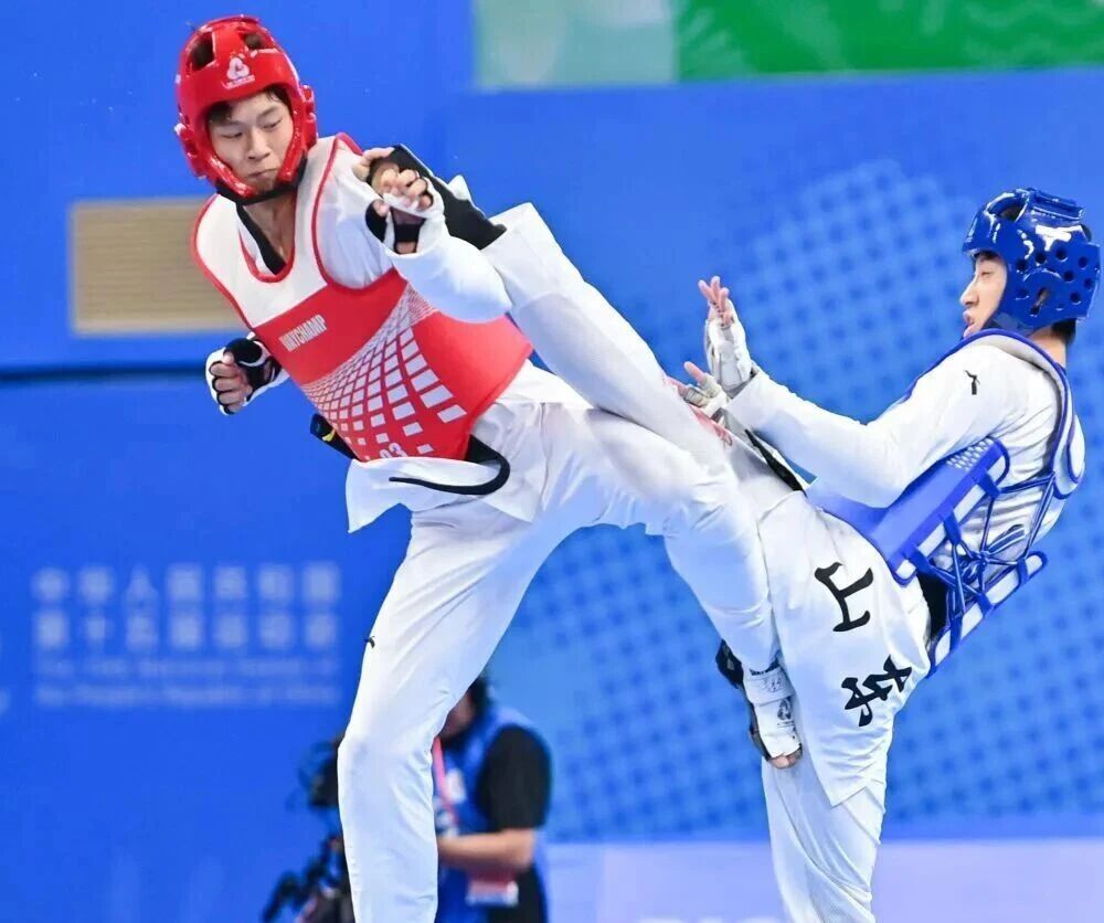 跆拳道赛场的首枚金牌诞生于男子68公斤级决赛,安徽选手刁李星君一路过关斩将。决赛中面对广东选手梁育帅,凭借猛烈的中远程进攻接连得分,最终凭借点数优势夺冠,这枚金牌也是安徽代表团本届全运会的首金。